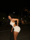 Effortless meets bold. This lightweight, seamless cotton mini dress hugs your body in all the right places while keeping you comfortable from day to night. Designed with a unique open-back silhouette featuring a braided strap detail and a scrunched tie on the left side for an adjustable, flattering fit.